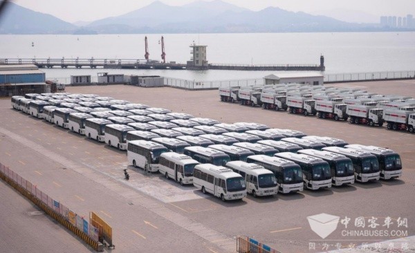 2025年,金旅客车在中东市场再传捷报——155辆客车近日从厦门港启程发往科威特,其中100辆金旅锦程将用于科威特卫生系统,为当地公共医疗系统工作人员提供高效、舒适的服务。这是本年度科威特市场最大规模的客车采购订单,进一步彰显中国制造在中东市场的竞争力。