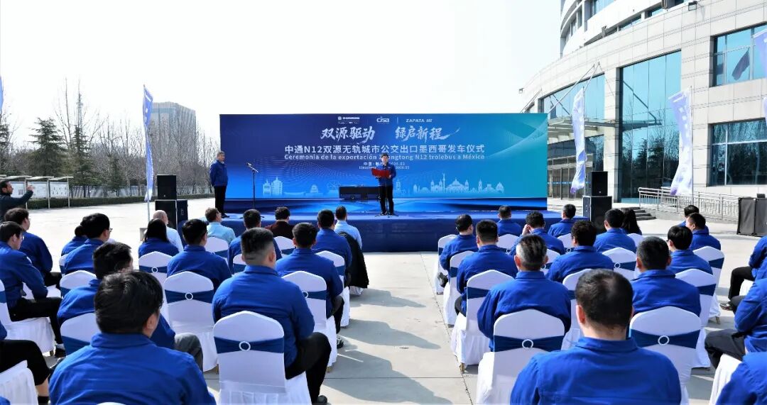 2026年3月9日,中通客车批量N12双源无轨城市客车交付墨西哥发车仪式成功举行。