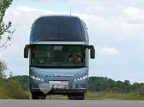 2004年,在法兰克福国际车展(IAA)商用车展会上,Neoplan全新Starliner系列豪华客车首次向公众见面。采用三轴设计,该系列客车长13.9米,宽2.55米,高3.9米。自此以后,Neoplan在超高地板客车领域停止生产两轴客车,Starliner也竖立了Neoplan豪华客车新形象。安装了曼公司生产的六缸D26发动机,客车最大功率达480马力。使用共轨燃油喷射系统,D26发动机采用直立的方式安装在客车的尾部。共轨燃油喷射系统能够帮助发动机在1900转/分在转速下产生2300牛米的扭矩。另外,所有的Starliner客车都采用了TipMatic12速变速箱和电子稳定系统(ESP),使车辆运行的稳定性达到最佳状态。