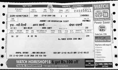 售票员接过记者填好的乘客信息单,将相关信息输入电脑,很快,一张巴掌大小的纸片从打印机中出来。记者如数把钱递了进去,他清点之后把那张纸片递了出来。这就是印度的火车票?!记者感到很好奇。票面上清楚地印着记者刚才填写的主要信息(见上图)。除了这些,还有一些广告。