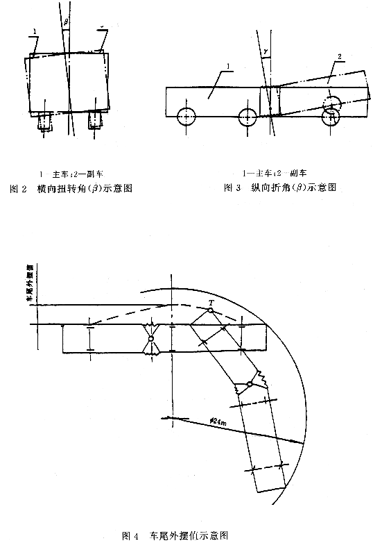 在通过球心且垂直于主车中支承平面的中心线为基准,副车绕过球心的横向中心回转所形成的角度(图3)。
