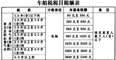 根据车船税法,乘用车车船税按照排气量划分为7个档次。乘用车车船税年基准税额从1.0升以下的60元至360元,到4.0升以上的3600元至5400元,最大差距将达到90倍。