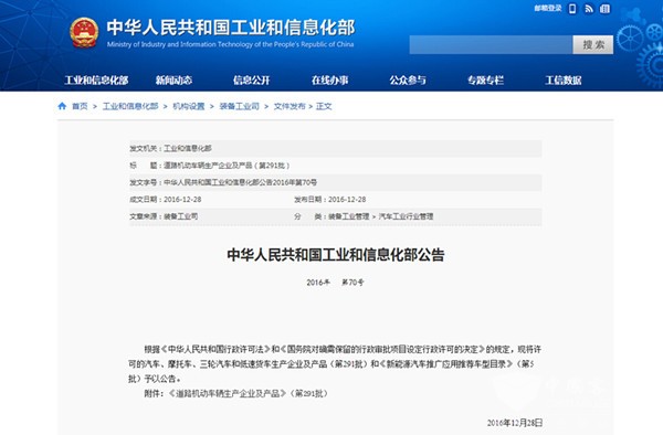 中华人民共和国工业和信息化部公告