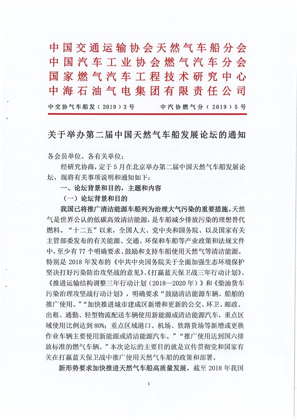 通知:5月,第二届中国天然气车船发展论坛将于北京举办