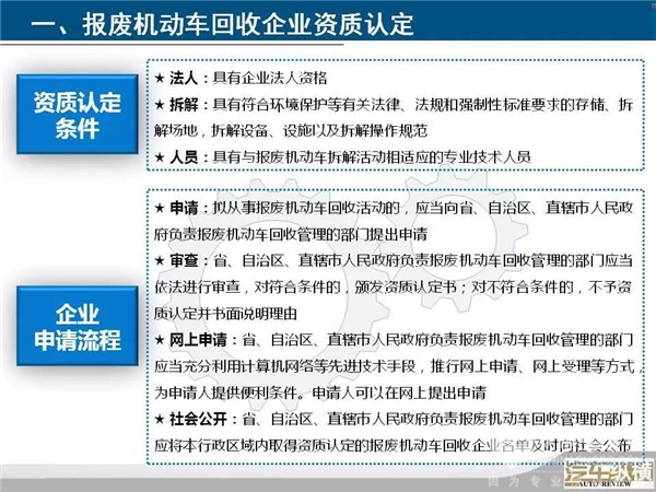2019年5月6日,国务院正式公布《报废机动车回收管理办法》,新办法自2019年6月1日起施行。其中,新版办法明确,禁止任何单位或者个人利用报废机动车“五大总成”和其他零部件拼装机动车,禁止拼装的机动车交易。办法明确,国家对报废机动车回收企业实行资质认定制度。未经资质认定,任何单位或者个人不得从事报废机动车回收活动。