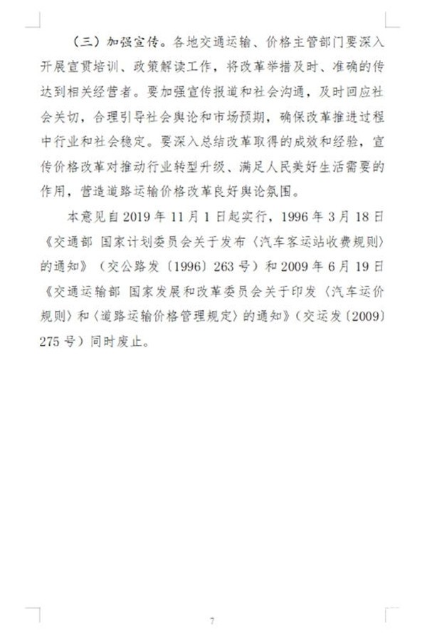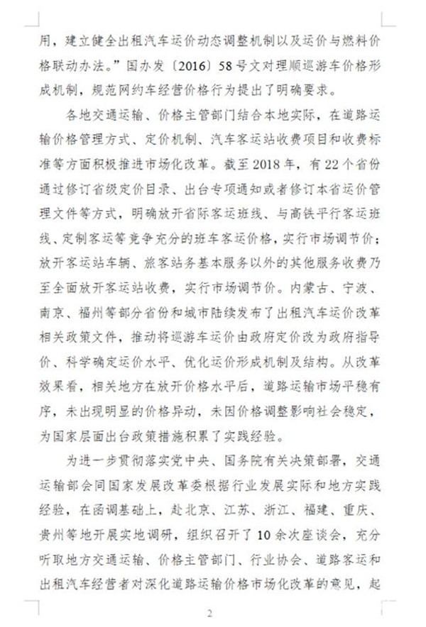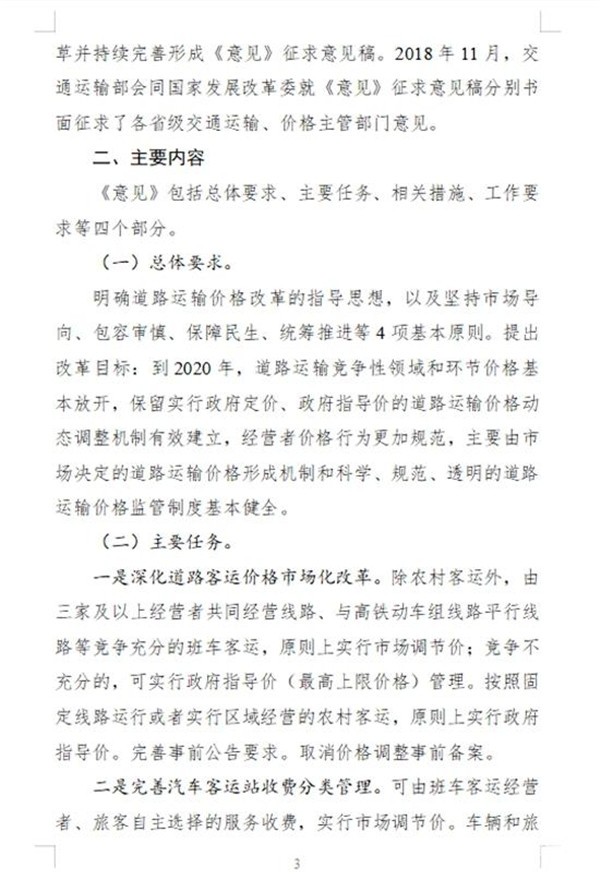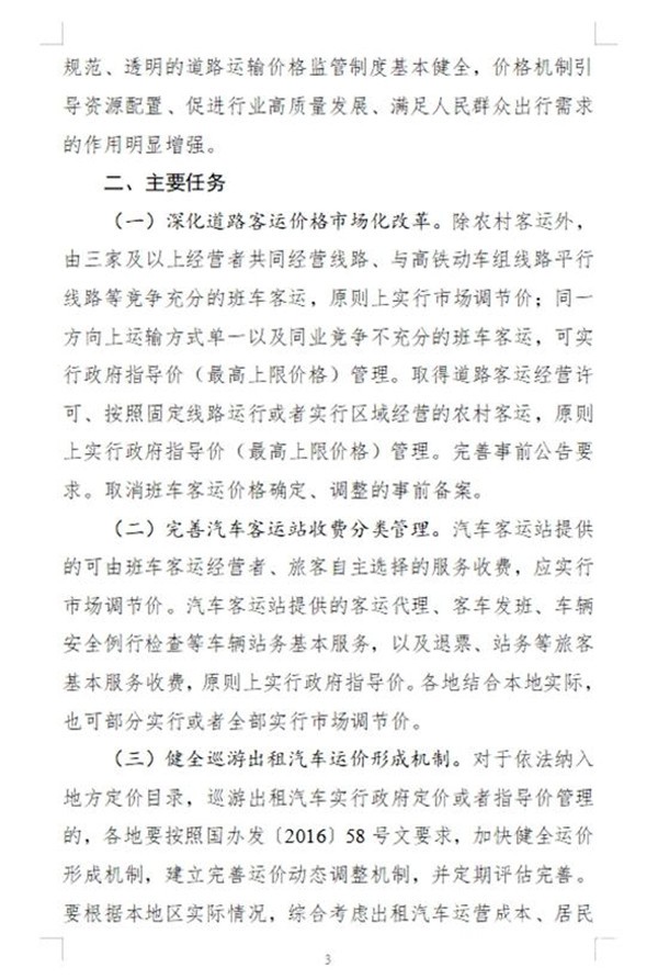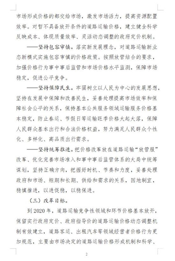 《意见》明确,到2020年,道路运输竞争性领域和环节价格基本放开,保留实行政府定价、政府指导价的道路运输价格动态调整机制有效建立,道路客运、出租汽车等领域经营者价格行为更加规范,主要由市场决定的道路运输价格,形成机制和科学、规范、透明的道路运输价格监管制度基本健全,价格机制引导资源配置、促进行业高质量发展、满足人民群众出行需求的作用明显增强。