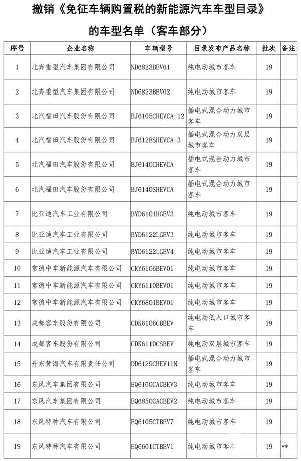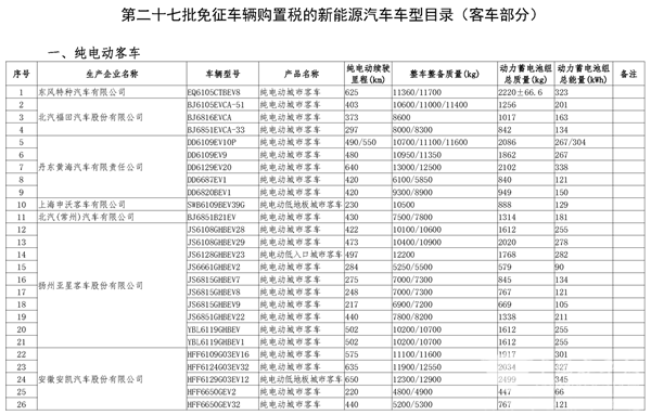 184款新能源客车入选 第27批免征购置税新能源车型目录发布