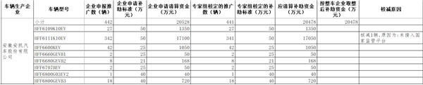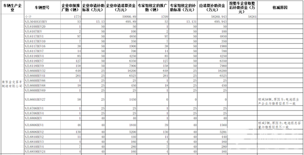 公示信息显示,2016年度企业共计申请新能源汽车推广数57989辆,企业申请清算资金692935.3426万元,专家组核定新能源汽车推广数55062辆,应清算补助资金658367.3321万元,按整车企业取整后补助资金658372万元。