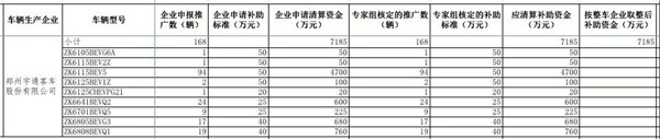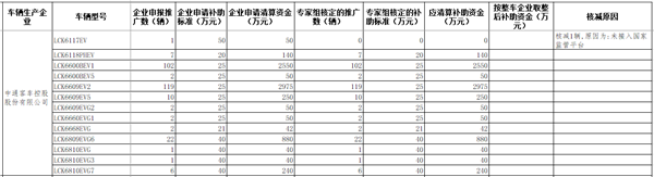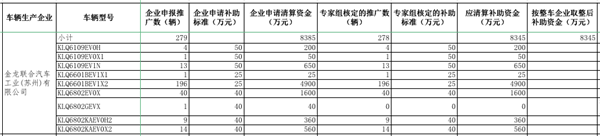 部分主流客车企业补助资金情况如下: