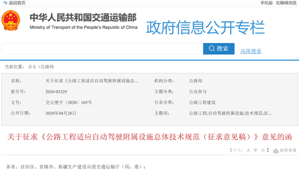 交通部发文征求意见!我国自动驾驶公路国标将出台