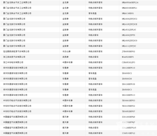 分企业来看,在所有的新能源客车中,中通客车数量最多,上榜11款;中车电动(含底盘)共上榜8款,排名第二;宇通客车上榜9款,排名第三。