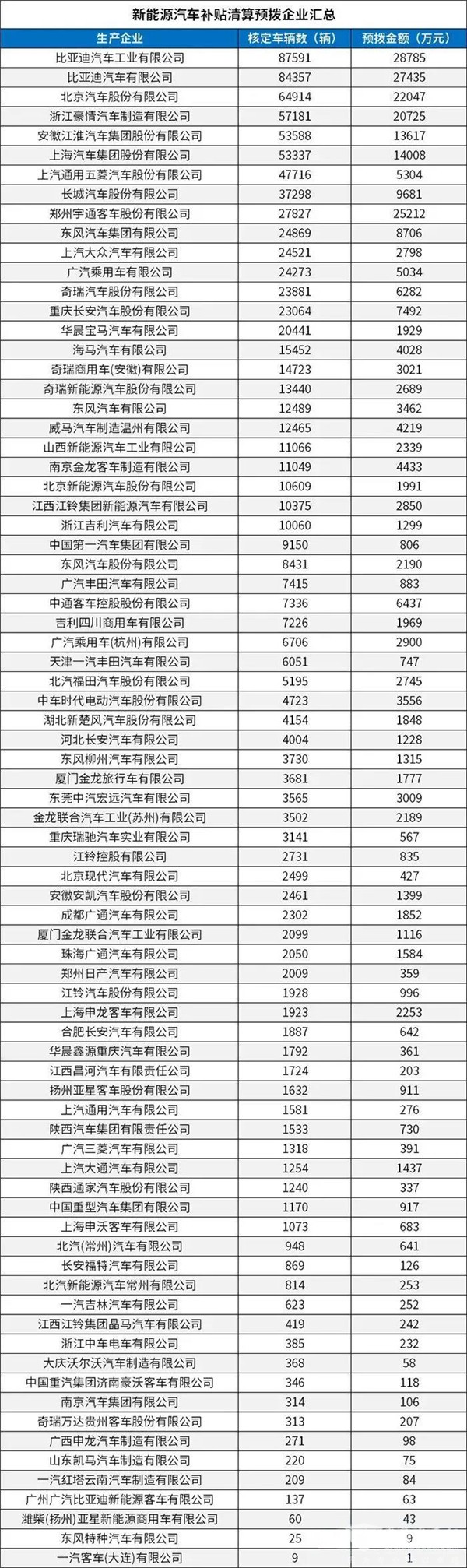 每个车企拨多少?财政部下达2020年新能源汽车补贴资金预算