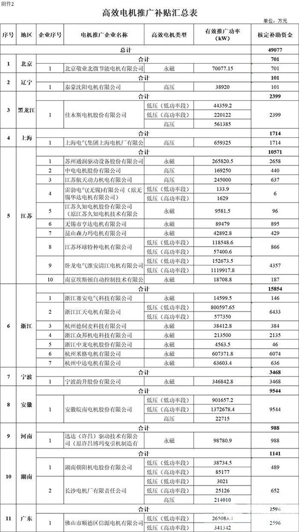 根据《关于开展“节能产品惠民工程”的通知》(财建〔2009〕213号)、《关于印发<节能产品惠民工程高效电机推广实施细则>的通知》(财建〔2010〕232号)、《关于做好高效电机推广补贴清算工作的通知》(财建〔2017〕6号)、《关于2016-2020年新能源汽车推广应用财政支持政策的通知》(财建〔2015〕134号)、《关于调整新能源汽车推广应用财政补贴政策的通知》(财建〔2016〕958号)、《关于调整完善新能源汽车推广应用财政补贴政策的通知》(财建〔2018〕18号)、《关于进一步完善新能源汽车推广应用财政补贴政策的通知》(财建〔2019〕138号)、《关于完善新能源汽车推广应用财政补贴政策的通知》(财建〔2020〕86号)等文件有关规定,现下达你省(区、市)节能减排补助资金(具体见附件),用于高效电机推广补贴、2015-2018年度新能源汽车购置补贴清算、新能源汽车购置补贴预拨。