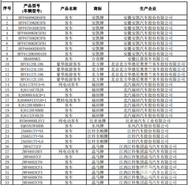 2020年8月6日,交通运输部公示了道路运输车辆达标车型表(第23批),本批达标车型共包括客车89款,其中包括74款传统客车,13款纯电动客车和2款燃料电池客车。