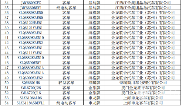 具体车型如下:(客车部分)