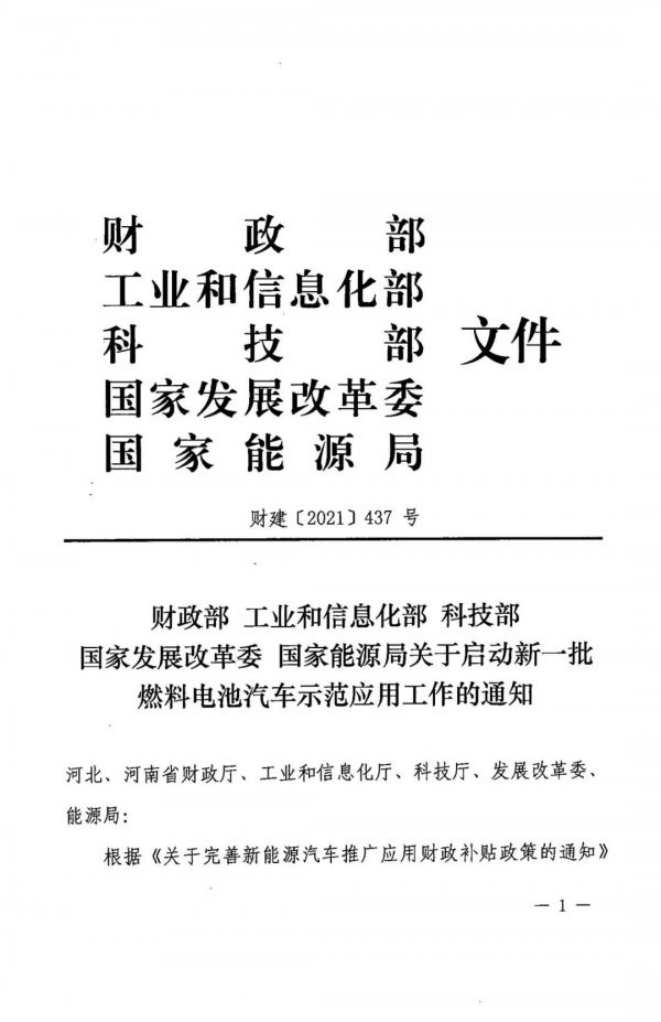 河北、河南获批!五部委发布启动新一批燃料电池汽车示范应用工作通知