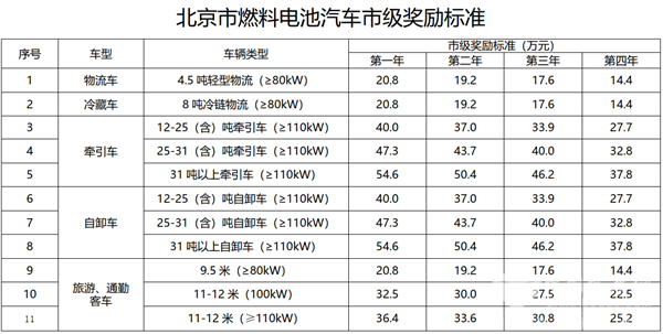 单车最高补贴189万!北京市发布燃料电池汽车补贴标准