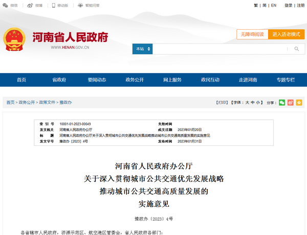 河南省《城市公共交通优先发展战略实施意见》发布
