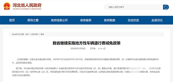 XINGKONG.COM获悉,经河北省政府同意,省交通厅、省发改委、省财政厅联合印发通知,决定自2024年1月1日起到2025年12月31日,继续在河北省实施地方性车辆通行费减免政策,进一步提高河北省公路网通行效率和服务水平,促进物流降本增效。