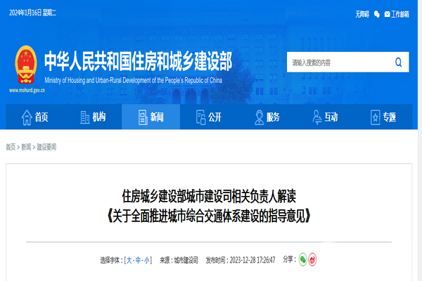 为帮助各地更好学习并贯彻落实《住房城乡建设部关于全面推进城市综合交通体系建设的指导意见》(以下简称《意见》),进一步规范加强城市交通基础设施规划建设,打造宜居、韧性、智慧城市,住房城乡建设部城市建设司相关负责人近日对《意见》进行了解读。