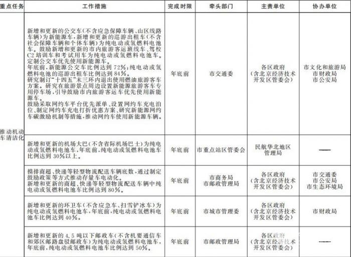 第二是新增和更新的公交车(不含应急保障车辆、山区线路车辆)为新能源车,鼓励新增和更新的市内旅游客运班线车,定制公交车优先使用新能源车。年底前,新能源公交车比例达到72%。新增和更新的机场大巴(不含省际机场巴士)为纯电动或氢燃料电池车,年底前,纯电动或氢燃料电池车比例达到30%以上。