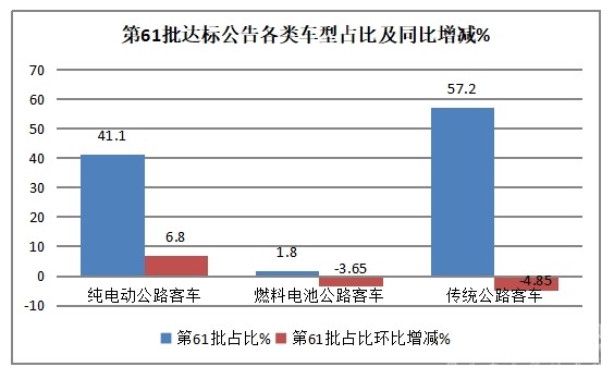 表1,第61批交通部达标车型公告上榜的各动力车型数量、占比与上一批环比(数据来源:交通部)
