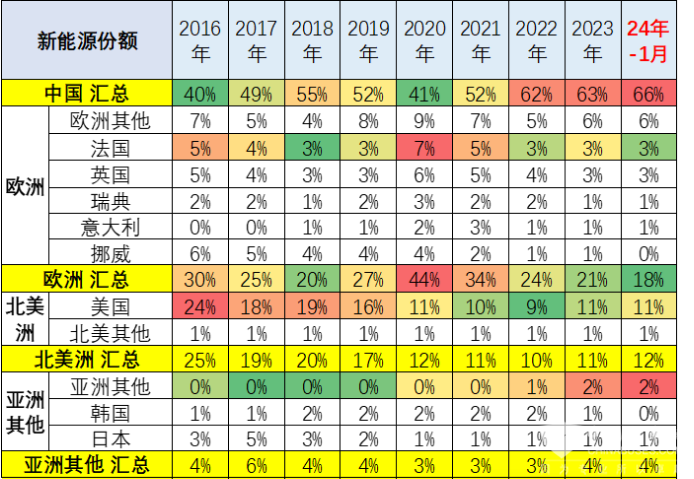 截图1,2016年-2024年1月我国新能源汽车占据全球的市场份额(数据来源:中国汽车流通协会)