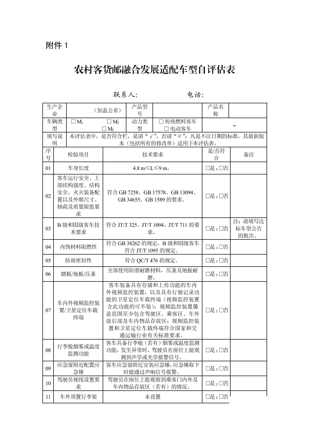 2024年1月,为推广农村客货邮融合发展适配车辆,交通运输部办公厅印发了《农村客货邮融合发展适配车辆选型技术要求(试行)》通知,该通知当中对客车的基本要求、行李舱及车内物品存放区要求等内容进行了规定。