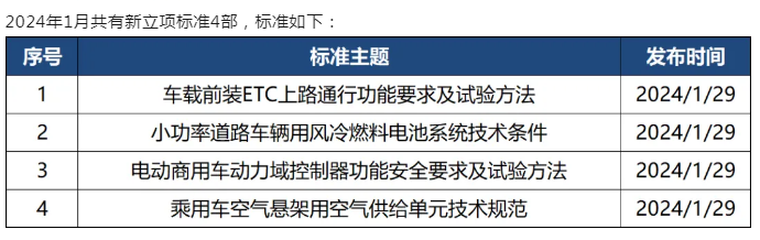 一、2024年1月发布的相关汽车行业标准法规汇总