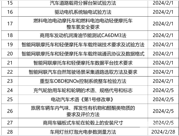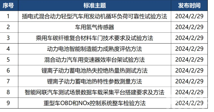 二、2024年2月份发布的相关汽车行业标准法规汇总