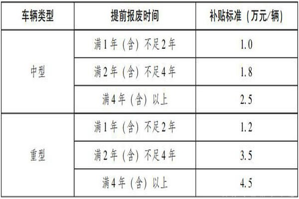 (1)提前报废老旧营运柴油货车补贴标准见表1。