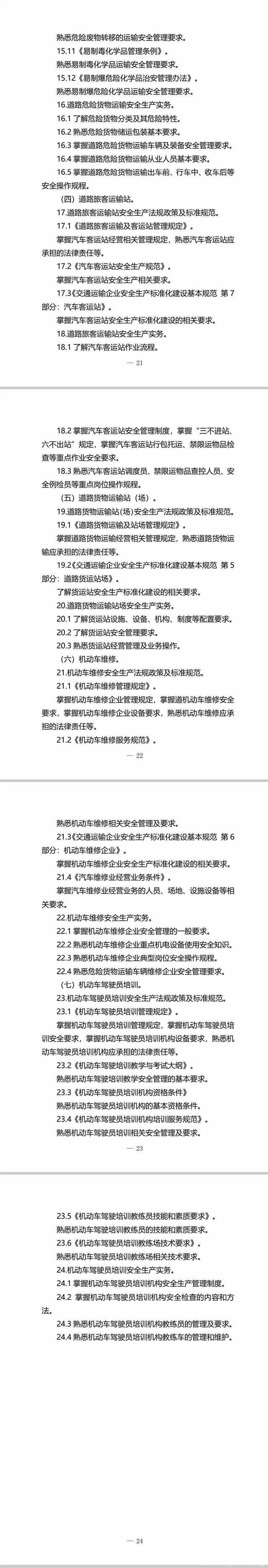 考核范围方面,增加了道路货物运输站(场)、机动车维修企业、机动车驾驶员培训机构等业务类型的考核大纲,便于上述业务类型开展考核的相关地区和企业参照执行。