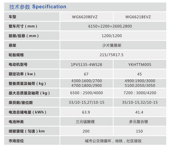 扬子江客车WG6620WG6621BEVZ