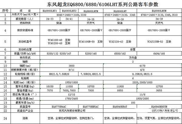 东风超龙EQ6800系列公路客车 报价与技术咨询