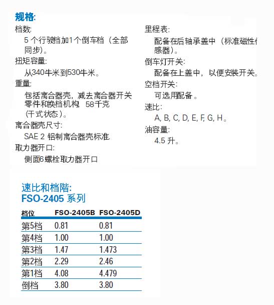 伊顿FSO-2405变速箱参数配置