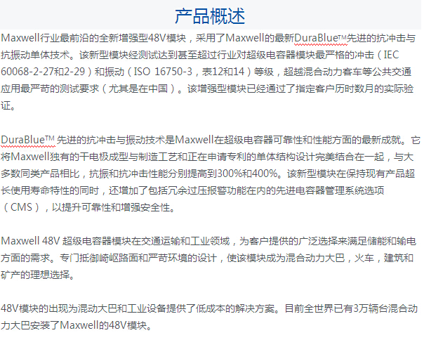 Maxwell增强型48V超级电容器模块参数配置
