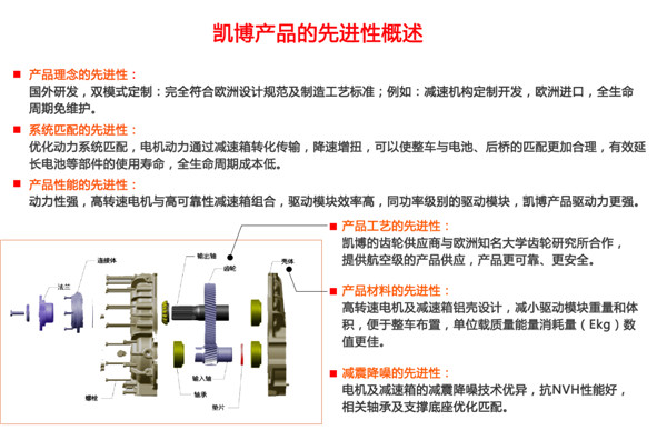 公司简介:北京凯博易控驱动技术有限公司,是一家专注于新能源汽车整车动力系统的高新技术企业。公司主营业务为纯电动减速系列、纯电变速系列、混动系列、智能双源无轨系列及核心零部件等最前沿技术的开发与生产、销售,公司始终站在国际化角度,采用欧洲前沿技术,高度重视国际技术的市场转化,同时填补了国内高端产品的行业空白。