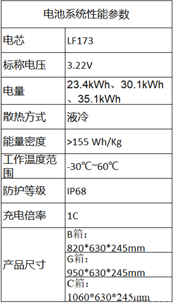 南京创源天地动力科技有限公司致力于通过先进的电池PACK技术,将轻量化、标准化、长寿命、快充性聚集并应用到新一代天玑系列高能动力电池水冷箱产品中,标准B、C、G系列电量分布广泛,单系统分为23.4kWh、28.7kWh、29.2kWh、30.1kWh、35.0kWh、35.1kWh、35.3kWh。