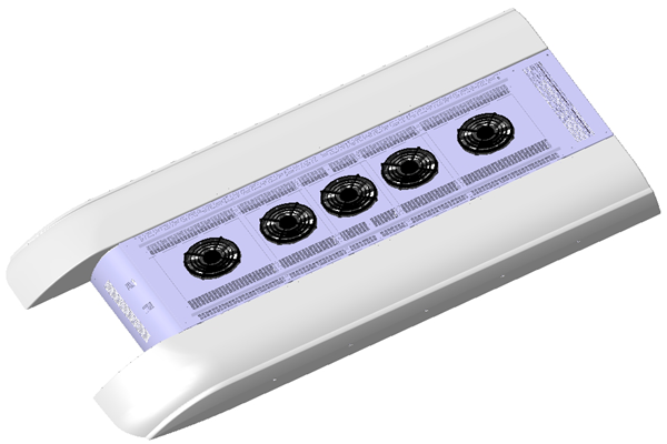 2、 顶置空调冷凝器使用平行流结构,换热系数大,换热能效高,轻量化,体积小;