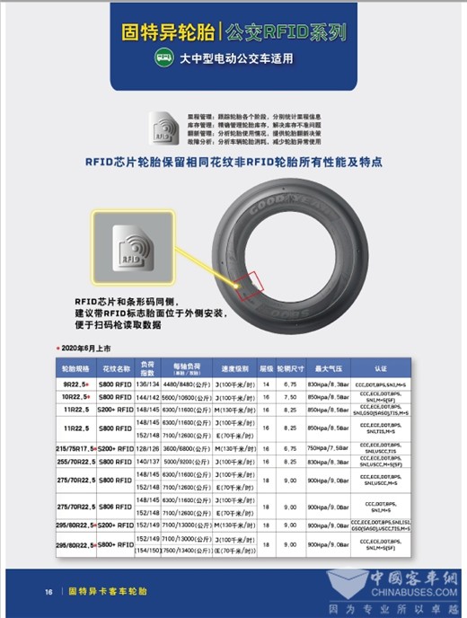固特异公交RFID系列大中型电动公交车轮胎参数配置