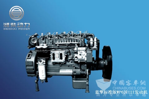 蓝擎国IIIWP6,功率范围150—240马力,转速为2300转,适应中重型车辆、客车及各种特殊车辆的需求。WP6系列在226B国II发动机基础上进行二次研发,采用BOSCH公司最先进的高压共轨电控系统对燃烧系统、供油系统进行了全新的设计;同国II阶段柴油机零部件通用化程度高,经济性、可靠性、排放和噪音等技术指标在国内同功率柴油机中居领先水平;维修成本低,85%零部件与国II柴油机通用;使用成本低,更优越的燃油经济性。