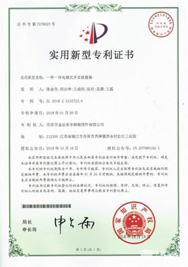 金业来自主研发的手自一体电磁式破窗器在车辆发生应急突发事件时,可在1S内的即短时间实现驾驶员一键启动破窗器自动破窗或乘客强制手动实现手动破窗,同时当手动破窗时翁鸣器报警,为乘客安全应急逃生赢得宝贵的逃生时间,由于该手自一体电磁式破窗器设有电路通路状态显示、手动翁鸣报警功能,解决了电磁破窗器日久线圈和电路断路、手动操作不能报警等技术问题,提高了破窗器的安全可靠性,使得该手自一体电磁式破窗器性能指标,能满足满足客车JT/T 1030-2016行业击窗器的行业标准技术要求,目前手自一体电磁式破窗器系列产品已获国家专利授权4项。