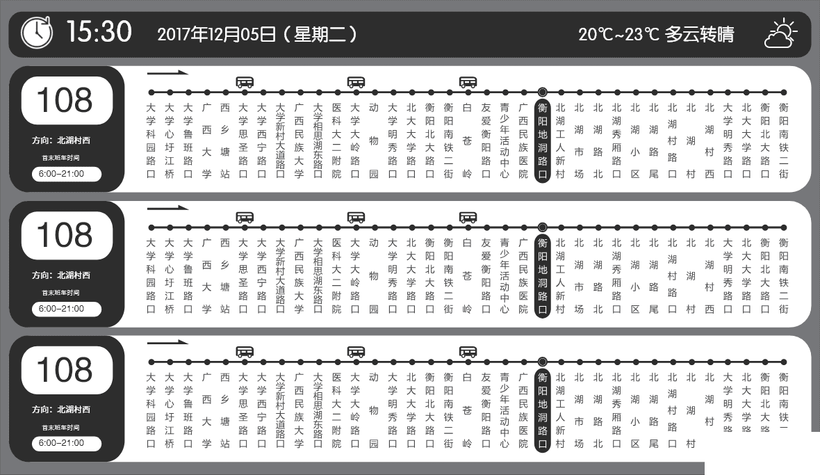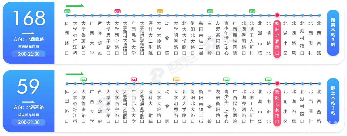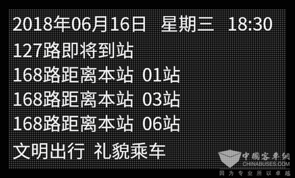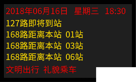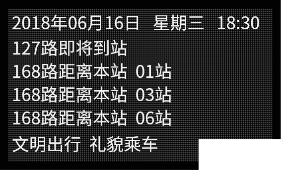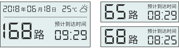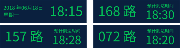 双字LED预报站显示,可实时显示车辆到站信息,距离本站还有几站,低功耗、易安装等。