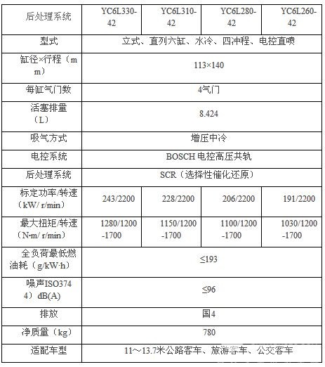 玉柴YC6L柴油机是针对客车特点量身打造的新一代高效专业柴油机,聚合了欧洲现代最新技术――四气门技术、湿式缸套高位下支承技术、欧洲强制冷却活塞专有技术,采用P7100喷油泵,严格执行德国FEV公司机械开发程序,性能全面提升,技术更加成熟,性价比更优,是一款强劲可靠、高效省油、低噪环保的客车升级版动力。国Ⅲ机型采用DELPHI电控单体泵技术或德国BOSCH电控高压共轨技术两种技术路线,国Ⅳ机型采用DELPHI电控单体泵技术路线。