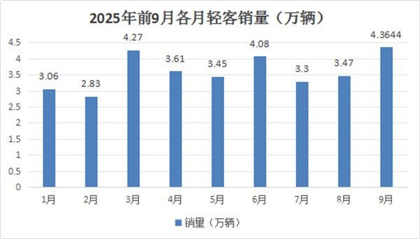 根据中汽协数据,20256年1-9月各月我国轻客销量统计: