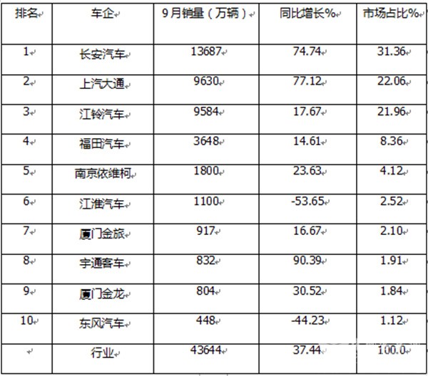 - 9月轻客:销4.36万辆!“金九”坐实 长安领跑 宇通领涨