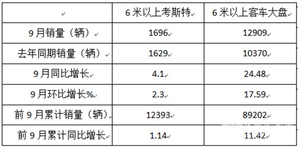 今年9月考斯特客车销量收获同环比双增长,且同比均为小增,据分析主要原因有: