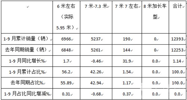 1-9月考斯特客车:“金九”弱现 累销1.24万辆 增1.1%