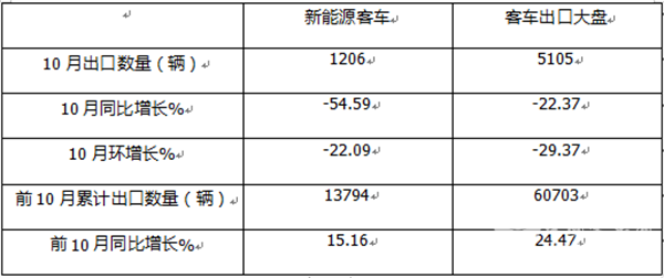 表1,根据中国客车统计信息网数据,2025年10月我国新能源客车出口同环比及前10月年累计同比与客车出口大盘比较: