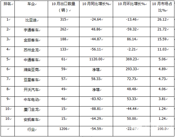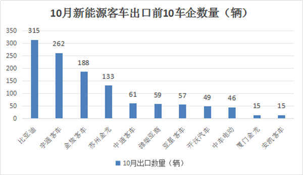 - 10月新能源客车出口:“银十”失约 比亚迪夺冠 宇通\金旅分列二三